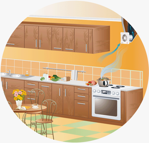Вариант применение вентилятора ВЕНТС М на кухне.