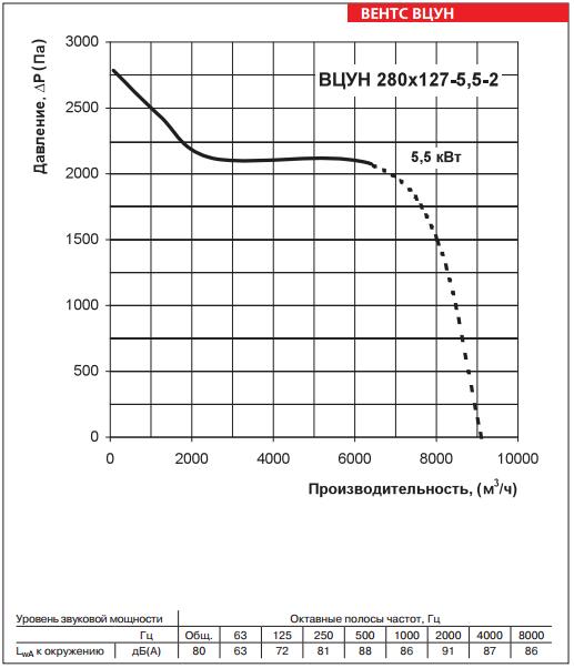Центробежный вентилятор одностороннего всасывания в спиральном поворотном корпусе с крыльчаткой, установленной на оси серийного трехфазного асинхронного двигателя. Максимальная производительность - 6330 м3/ч.