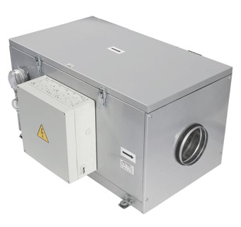 Звуко- и теплоизолированный вентиляционный агрегат. Обеспечивает помещения свежим отфильтрованным воздухом. Для эксплуатации установки при низких температурах наружного воздуха установлен электронагреватель. Максимальная производительность - 990 м3/ч.