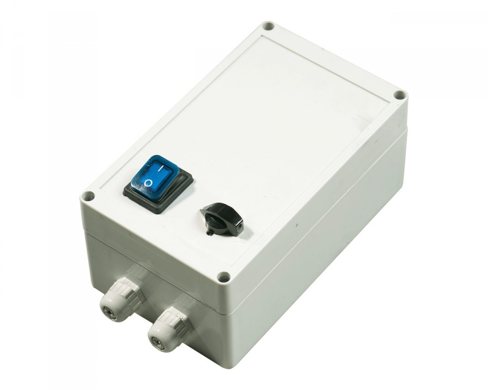 Корпус регулятора изготовлен из негорючего термопластика. Регулятор имеет пять скоростей с выходным напряжениям 110В - 130В - 160В - 190В - 230В. Регулятор оборудован кнопкой ВКЛ./ВЫКЛ с лампой индикации работы, ручкой переключения скоростей и сигнальной лампой, показывающей аварийную работу регулятора. Регулятор имеет встроенное устройство защиты электродвигателя, которое прекращает подачу электричества при срабатывании термореле, вмонтированного в электродвигатель вентилятора. Повторное включение происходит после возвращения температуры двигателя к рабочим значениям.