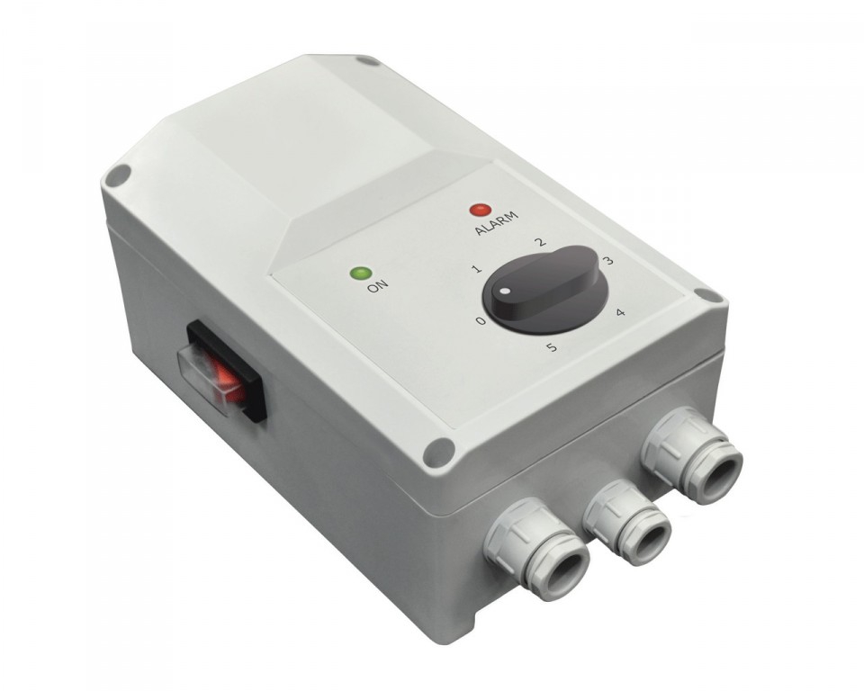 Корпус регулятора изготовлен из негорючего термопластика. Регулятор имеет пять скоростей с выходным напряжениям 90В - 150В - 200В - 280В - 400В. Регулятор оборудован ручкой переключения скоростей лампой индикации работы и сигнальной лампой, показывающей аварийную работу регулятора. Регулятор имеет встроенное устройство защиты электродвигателя, которое прекращает подачу электричества при срабатывании термоконтактов электродвигателя вентилятора. Повторное включение происходит после возвращения температуры двигателя к рабочим значениям.